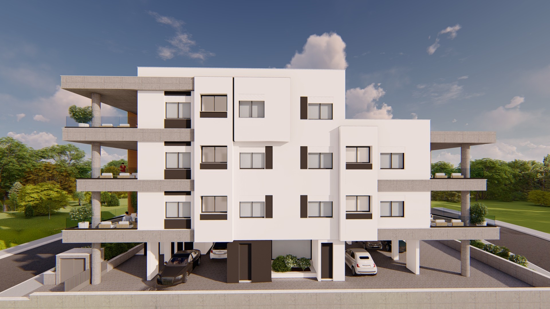 ASD Sotiriou provided the full structural design for both buildings, including foundation design, shear wall and flat slab detailing, and coordination with the architectural and MEP teams. Architectural design by Kyros Lontos Arhitekton.
