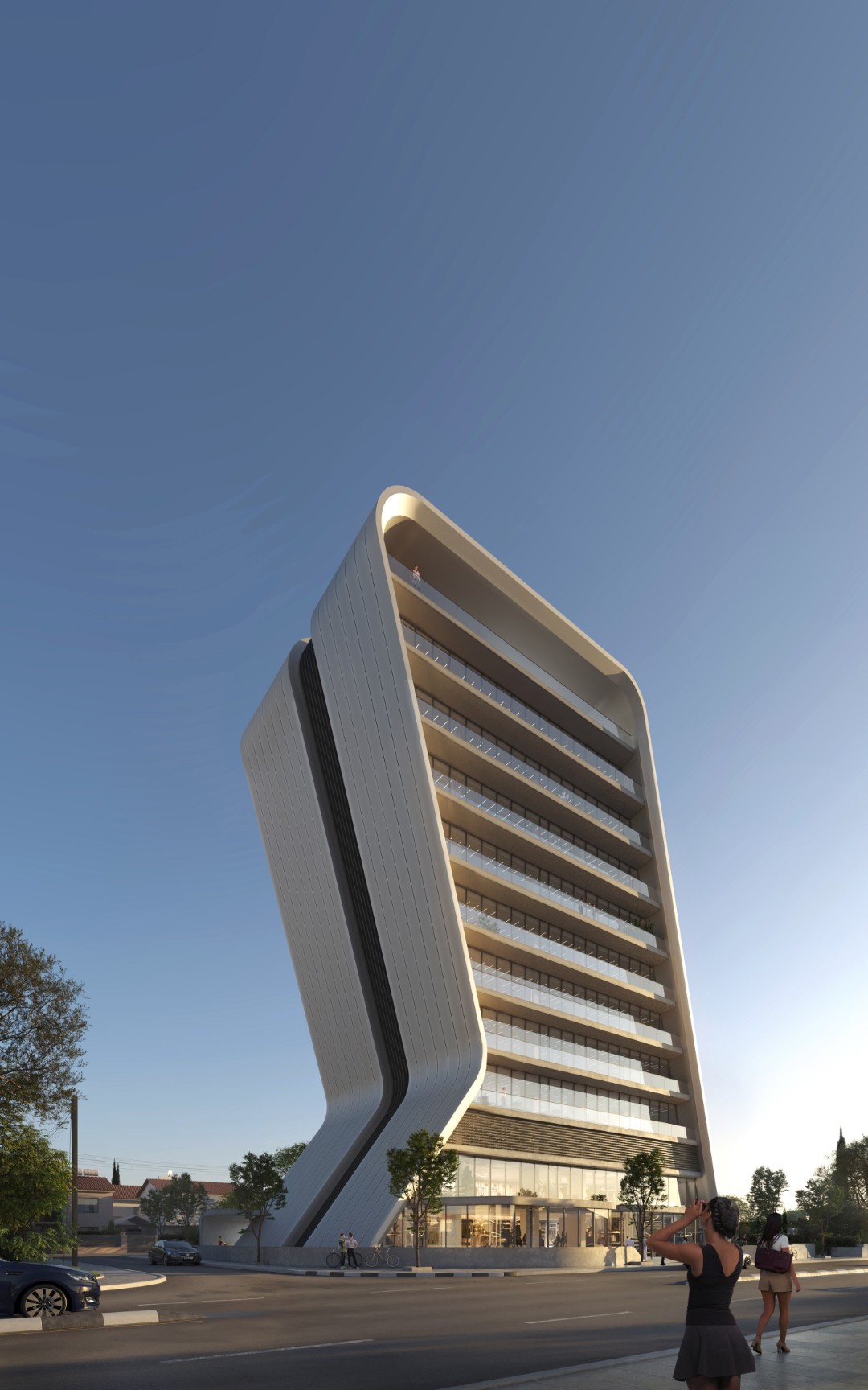 Evolution Tower is a contemporary multi-storey commercial development located in Limassol’s central business district, designed as a landmark office building with a distinctive architectural form. The project comprises two basement levels, ground floor, mezzanine, and multiple office floors, providing high-quality, flexible workspace environments.