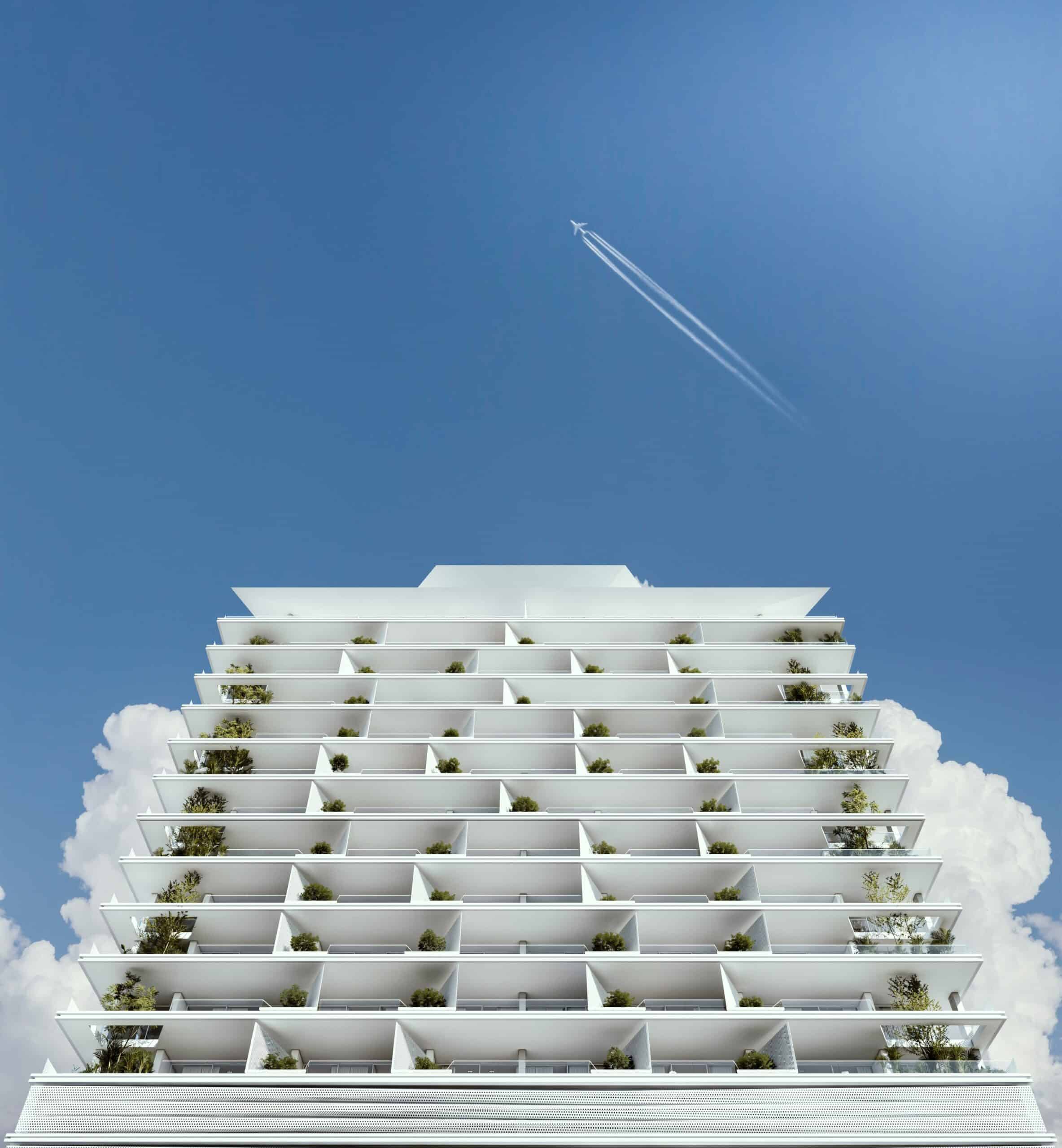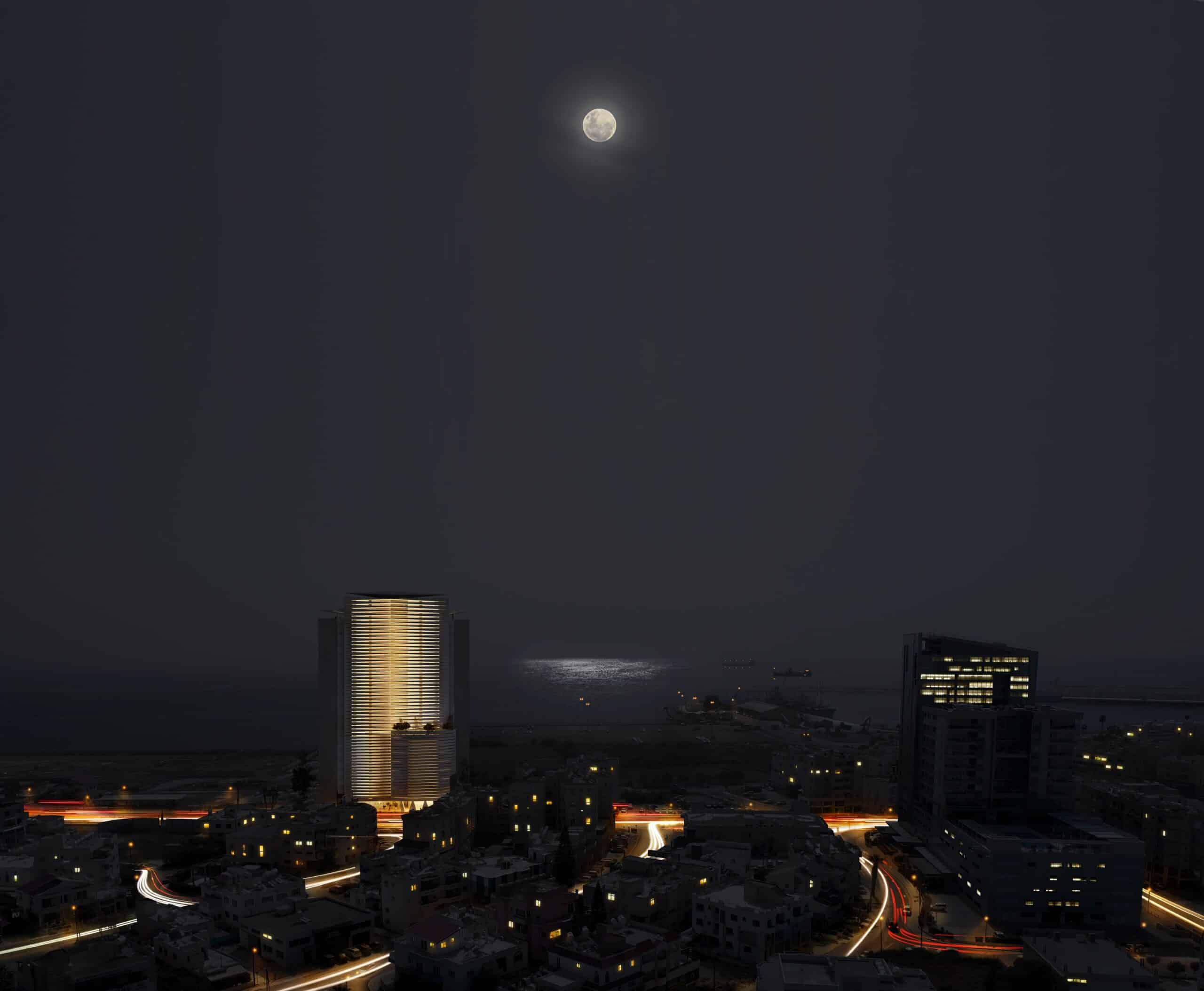Lumina Mare is a 20-storey mixed-use tower under construction near Larnaca Port, approximately 350 metres from the seafront. The development reaches 65 metres in height and comprises ground-floor boutique retail, private parking levels, and 54 residences from the 7th floor upwards, with amenity spaces including a residents’ lounge on the 7th floor, an infinity pool on the 19th floor and a landscaped roof garden at the 20th floor.