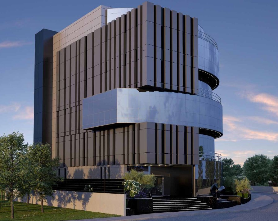 An innovative structure with flat slab, long span post tension system.